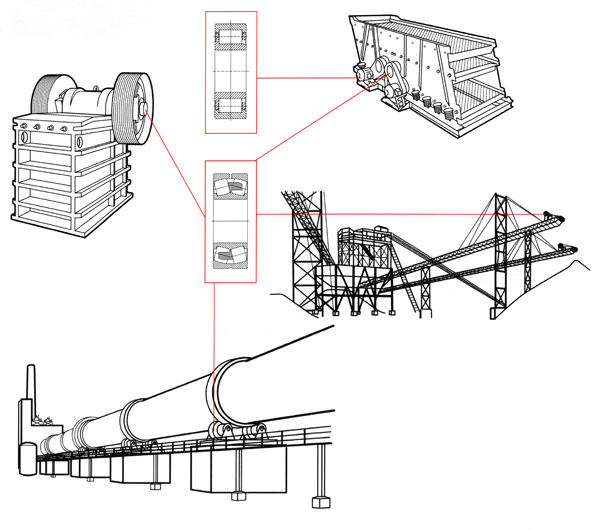 礦山機(jī)械惡劣的工作環(huán)境,要求軸承在高負(fù)載、多粉塵的條件下連續(xù)工作。尤其是振動(dòng)篩和破碎機(jī),其振動(dòng)對軸承極具破壞性。針對礦山機(jī)械行業(yè)的特殊應(yīng)用工況,研發(fā)了礦機(jī)專用軸承,幫助礦山機(jī)械設(shè)備提高連續(xù)運(yùn)行的可靠性,減少用戶維護(hù)和修理的成本。
