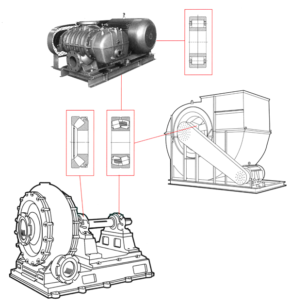 風(fēng)機行業(yè)應(yīng)用特點為連續(xù)、高速運行、軸承易發(fā)熱、同時對軸承噪音有較嚴格的要求。針對風(fēng)機行業(yè)的運行要求,軸承采用特殊設(shè)計,開發(fā)出了風(fēng)機專用軸承系列。既滿足了風(fēng)機行業(yè)對軸承的噪音要求,同時也很大地提高了軸承在風(fēng)機上的使用壽命。