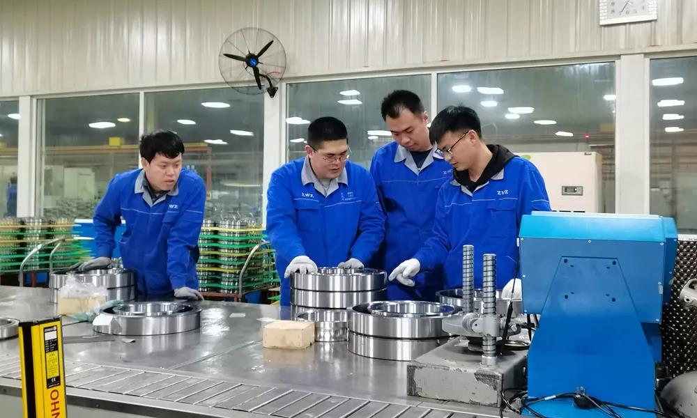 對(duì)生產(chǎn)更大的考驗(yàn)在裝配作業(yè)區(qū)。一套該規(guī)格軸承廠軸承配套滾子多達(dá)68粒,是普通圓柱電機(jī)軸承滾子數(shù)量的四倍,而且形狀特殊,導(dǎo)致裝滾子的效率非常低,合套難度大。接到任務(wù)后,精滾班班長于英娥帶領(lǐng)班組成員全力做好分選尺寸、合套、檢測、搬運(yùn)等工作。還安排技術(shù)、生產(chǎn)等管理人員加班為裝配工序做好輔助工作,確保完成交付進(jìn)度。僅4天時(shí)間,第一批1800套滾針軸承就順利交付。剩余幾個(gè)規(guī)格的滾針軸承月末按時(shí)交付。裝配作業(yè)區(qū)作業(yè)長周德春介紹說:“全月任務(wù)量太大了,裝配工序人手又緊張,每天的合套數(shù)都排得滿滿的,每個(gè)人都盡了全力。”