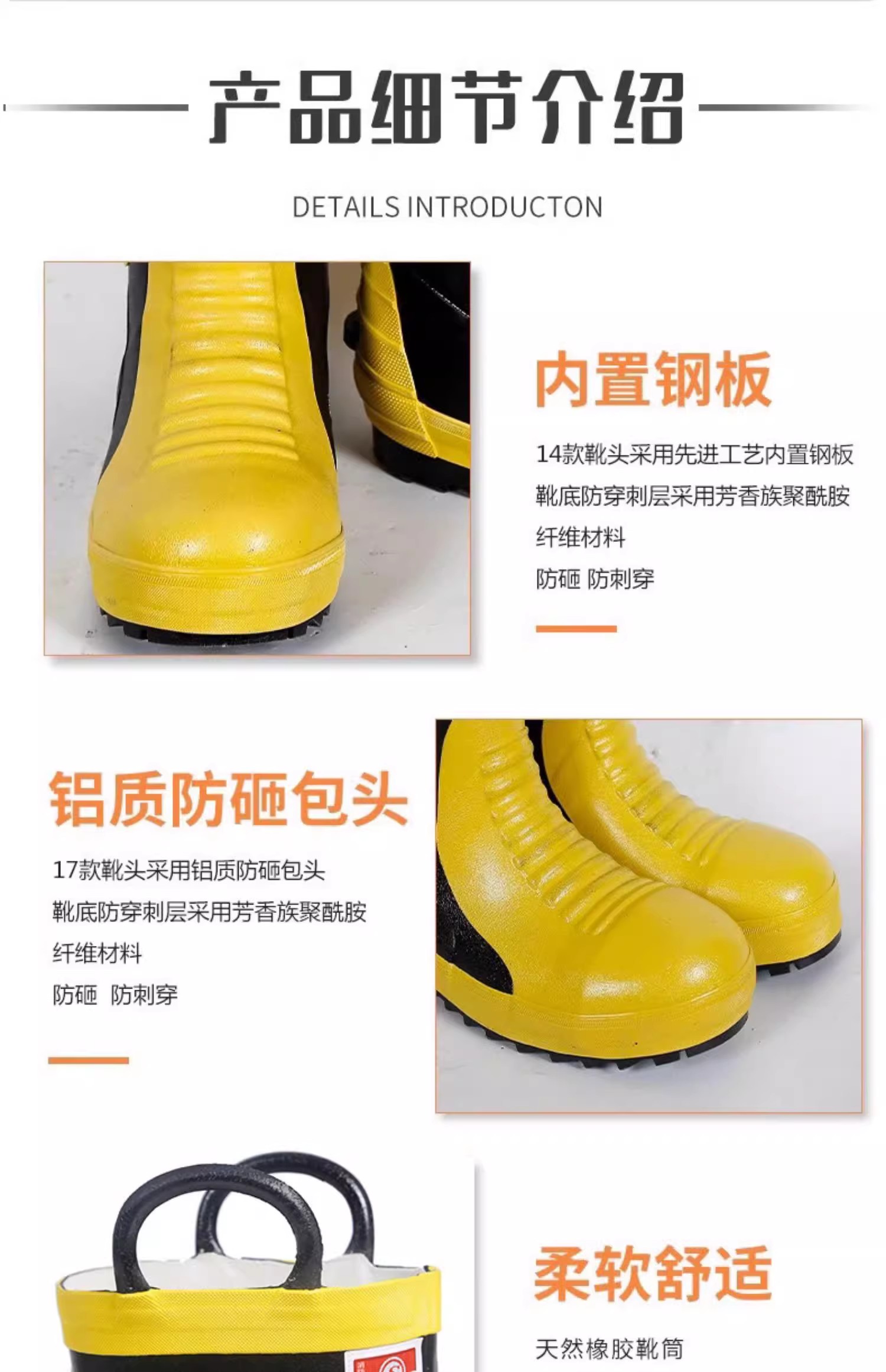 鴻寶滅火防護靴戰(zhàn)斗膠靴防砸防刺輕便防滑廠家直供